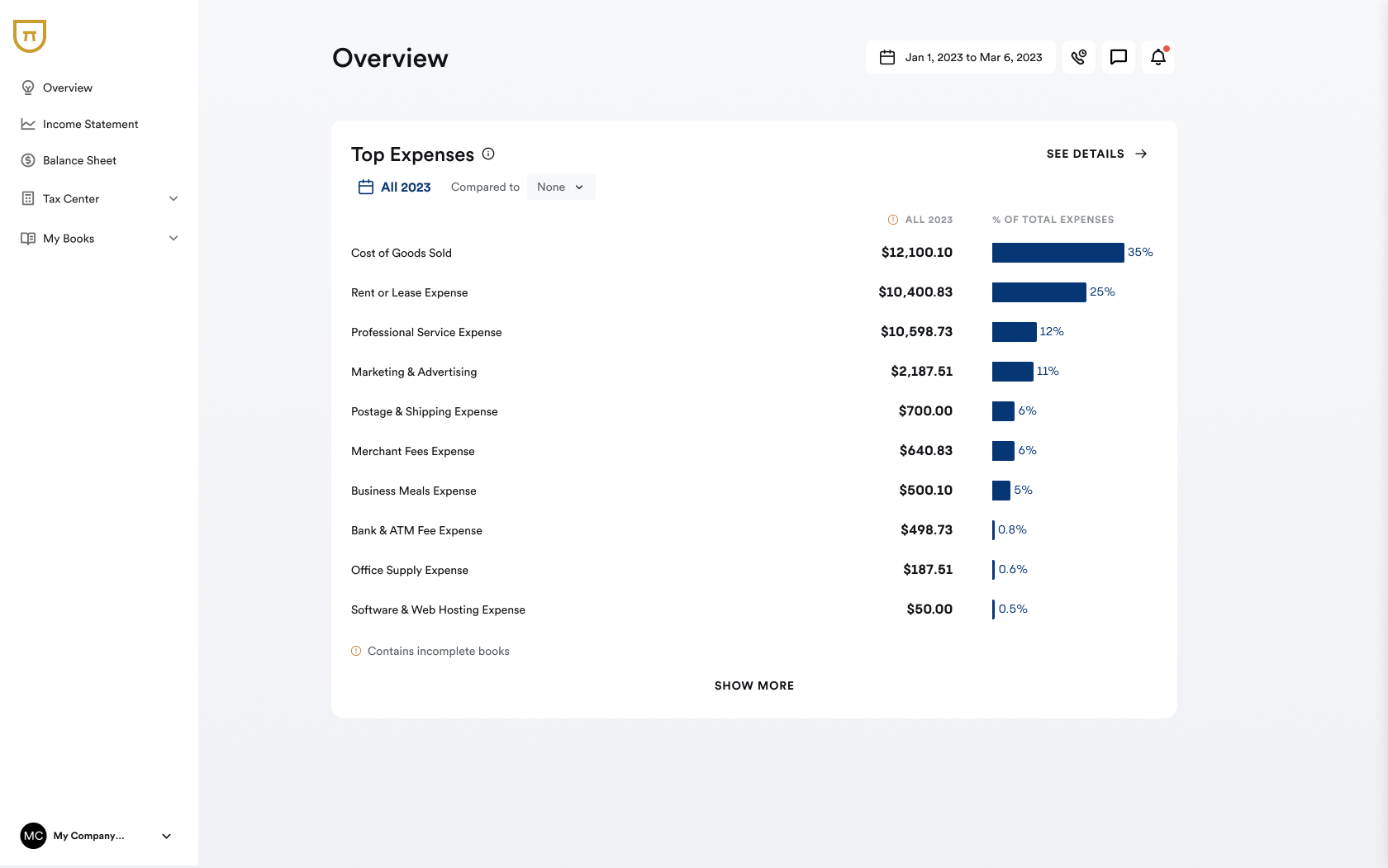 Exclusive to Bench, you’ll find the top expenses report inside your Bench account.