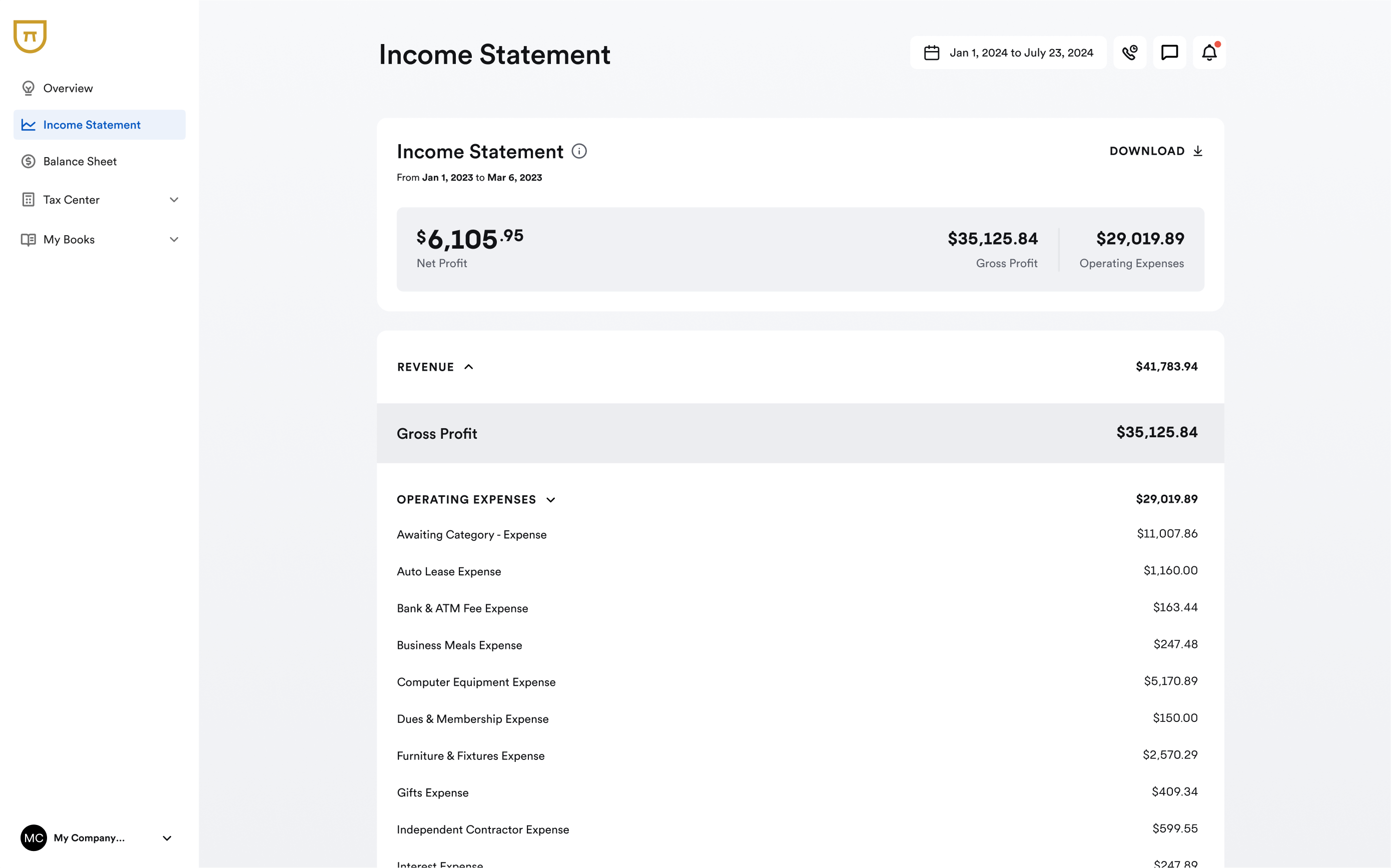 Prepared monthly by your Bench bookkeeping team, your income statement shows: