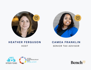 You’ll hear from Camea Franklin, Bench’s in-house Senior Tax Advisor and an IRS designated Enrolled Agent. Camea has been working in the accounting industry providing tax compliance, tax resolution, bookkeeping and virtual CFO services for 13 years.
