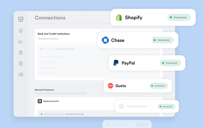 Manage transactions from personal accounts: Connect personal accounts that are used for business and your transactions will automatically flow in.