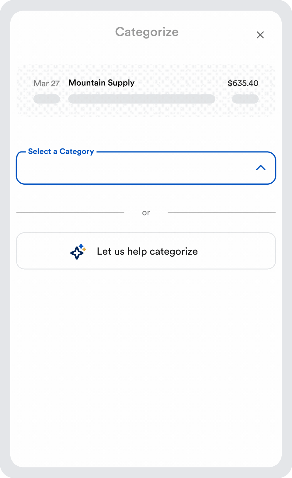 If you're unsure about how to categorize a transaction, simply describe the purpose of the transaction using the Categorization Assistant. It will identify the correct category in real-time. For unique or complex transactions, you can request additional support from your bookkeeper.