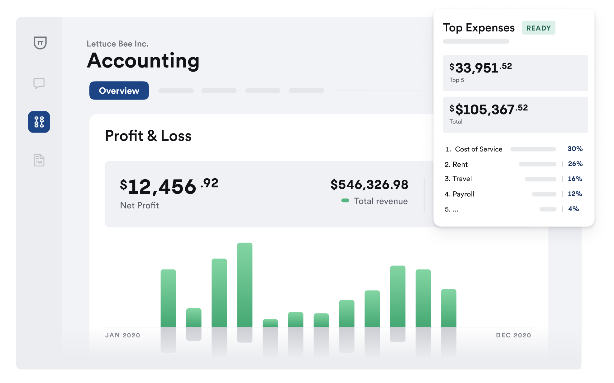 The Bench platform gives you monthly financial statements and expense overviews to keep you in control of your money. At-a-glance visual reports help you see the big picture and give you actionable insights to help you grow your business. You’ll never be in the dark again.