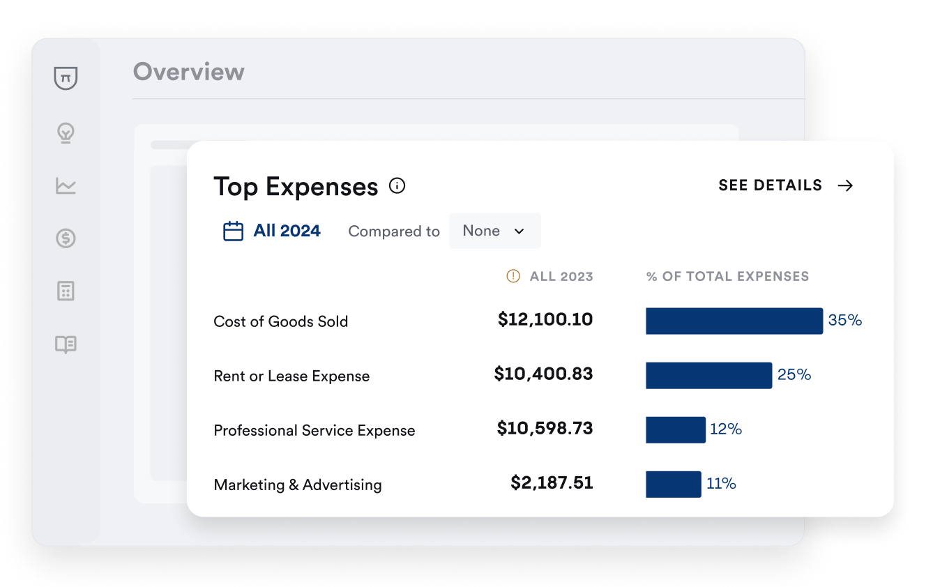 Imagine a crystal-clear view of your business finances, anytime you need it. With Bench’s Reports, that clarity is at your fingertips. Dive into visual reports on everything from top expenses to profit and loss, all designed to give you the insights to drive your business forward.
